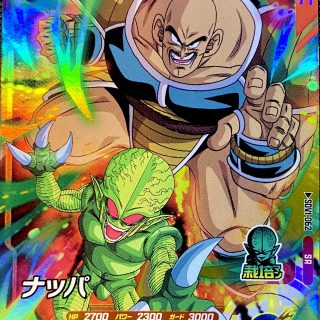 今回は、SDV1弾のSR、ナッパを使ってみました!1ラウンド目の作戦決定時、敵チーム全員の戦闘力を半減し、栽培マンで攻撃した敵エリア全員の気力を減らせるカードです。まずはカードを見てみましょう。こちらがナッパです!好戦的な表情で、栽培マンと...