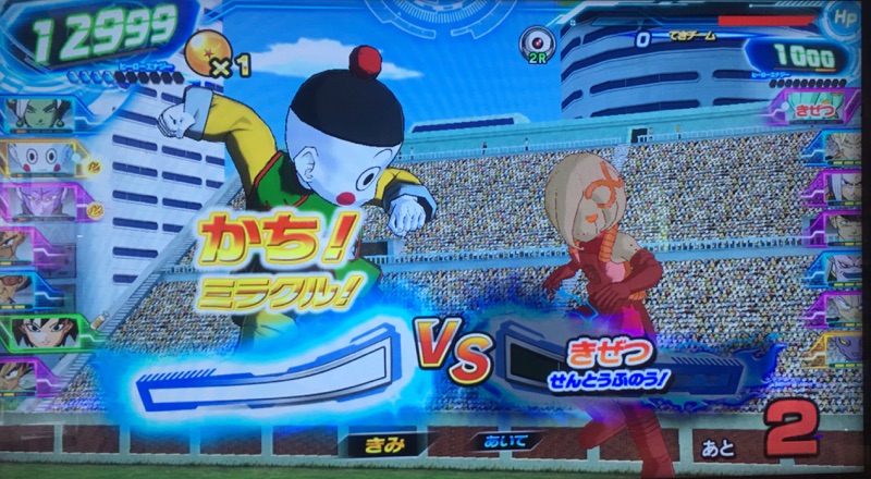 1ラウンド目、強者の領域で気力ピンチになった敵アタッカーを、ザマスのロックオンで気絶させて、餃子のロックオンでトドメを刺します。