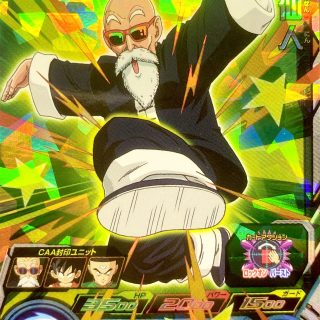 今回は、ウルトラゴッドミッション10弾のSR、亀仙人を使ってみました!バトル開始時、パワーが2000以下の仲間の与えるダメージを+1000できるカードです。まずはカードを見てみましょう。こちらが亀仙人です!ゴキゲンな雰囲気で、強烈な飛び蹴り...